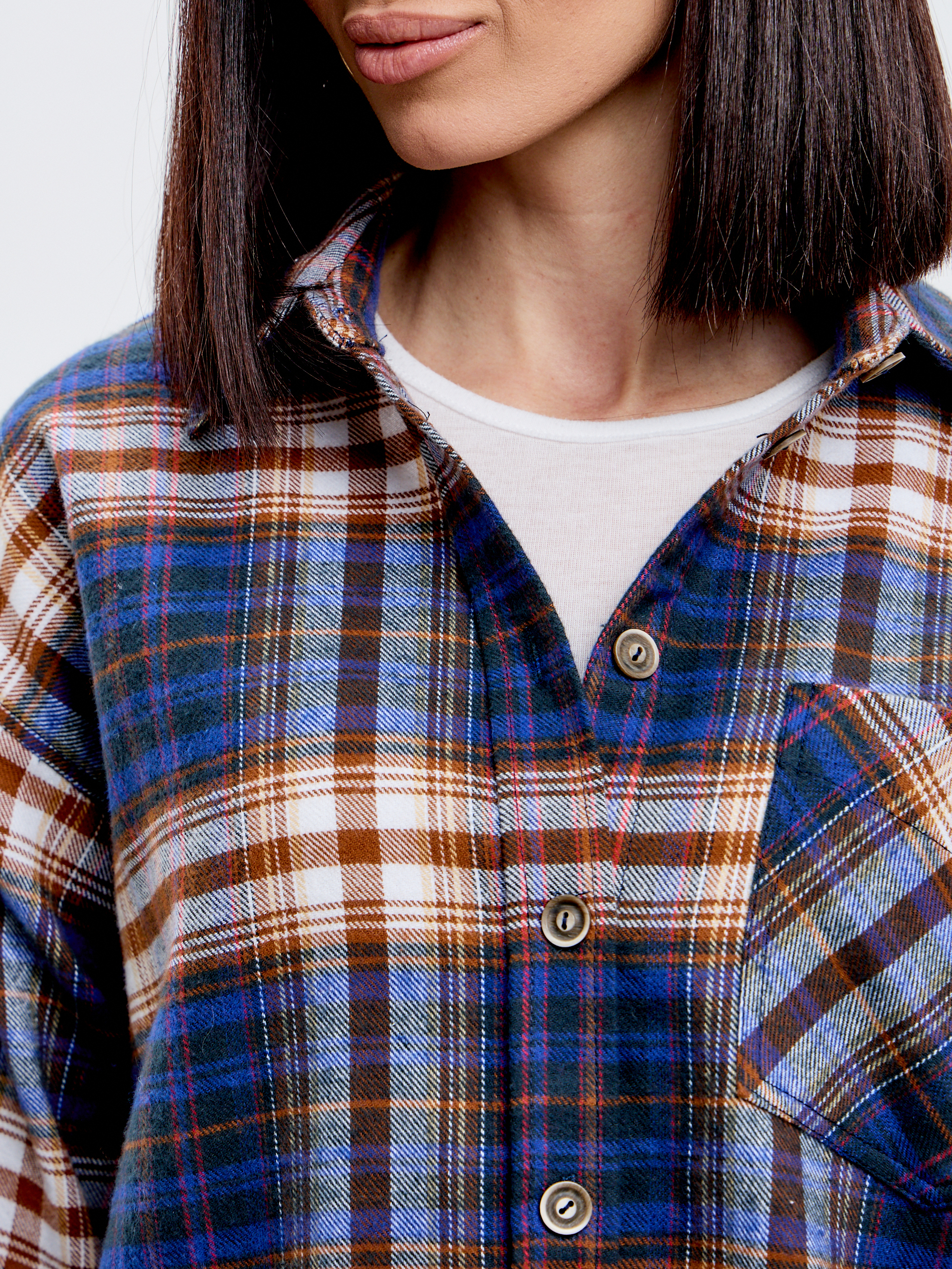 Элегантная женская рубашка в стильную клетку станет незаменимой частью вашего гардероба. Модель выполнена из высококачественного 100% хлопка, обеспечивающего максимальный комфорт при носке.